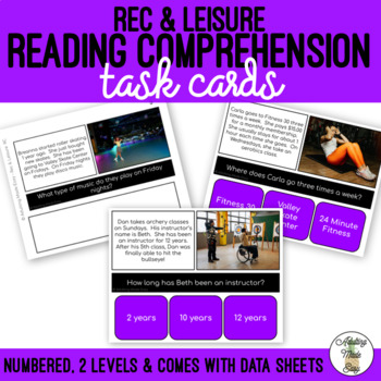 Rec & Leisure Simplified Reading Comprehension Task Cards