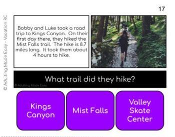 Simplified life skills rec & leisure themed passages consist of 4 short sentences each and real photos. Questions focus on WH questions among a limited field of 3 answer choices. This activity is great for special education students.