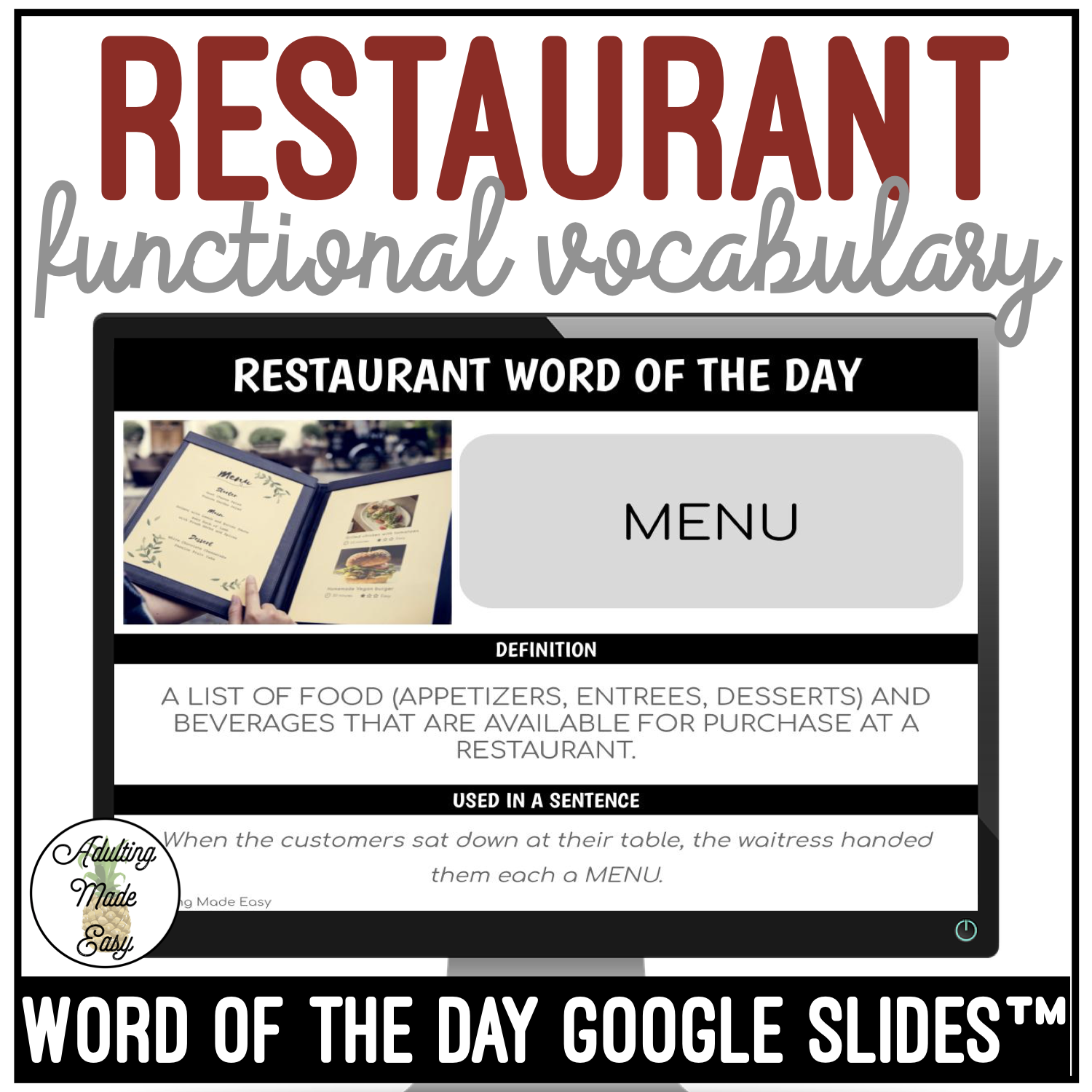 Restaurant Functional Vocabulary WORD OF THE DAY Google Slides
