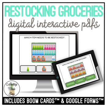 Vocational Which Item Needs to be Restocked? NO PREP, PAPERLESS, digital interactive PDF activity to practice identifying what grocery item is missing, identifying the patterns on the shelf, and identifying which item needs to be restocked onto the shelf as you would part of a grocery store job. Age appropriate life skills activity for secondary special education students! Distance or Remote learning