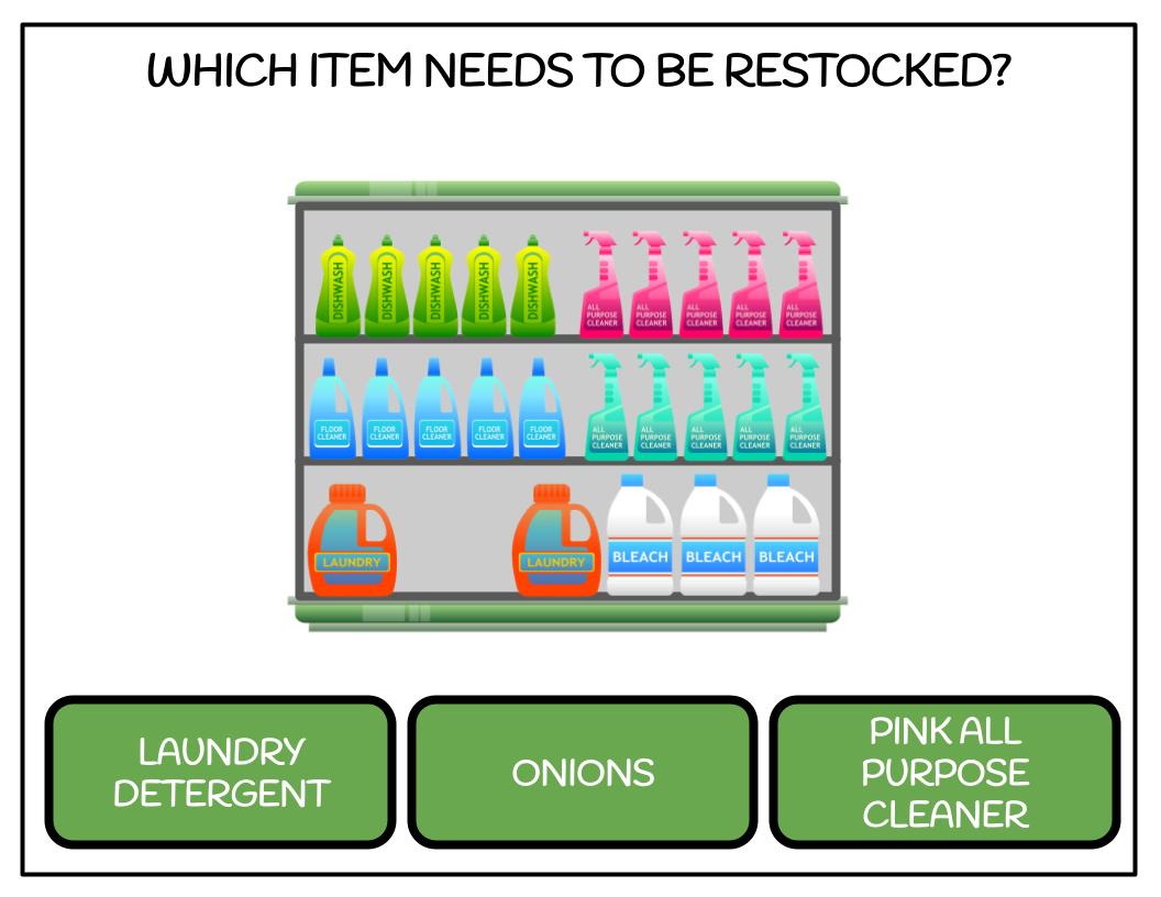 Vocational Job Skills – Which Item Needs to be Restocked? Large Task Cards
