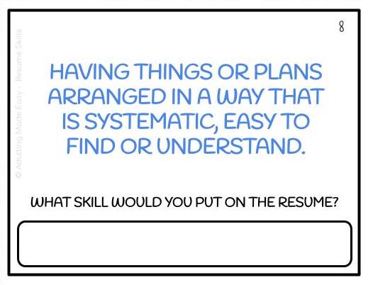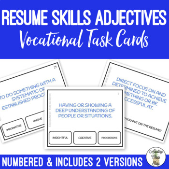 Vocational career prep to identify personal skills, strengths and qualities that look good on a resume, and their definitions.