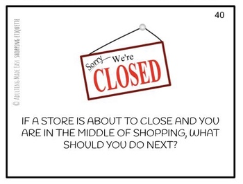 Age-appropriate behavior & social skills etiquette for shopping in the Community. Great for lesson before going on a CBI.