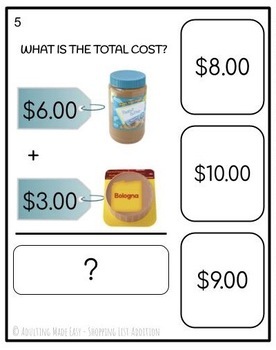 Functional life skills Math & Reading using price tags and grocery store products to do simple addition problems. This activity is formatted to make adding shopping list prices realistic and easier to understand for special education students. consumer math