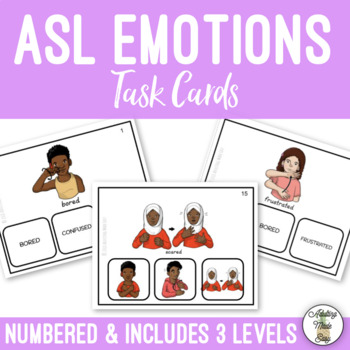 48 American Sign Language Emotions (ENGLISH) Differentiated Task Cards.