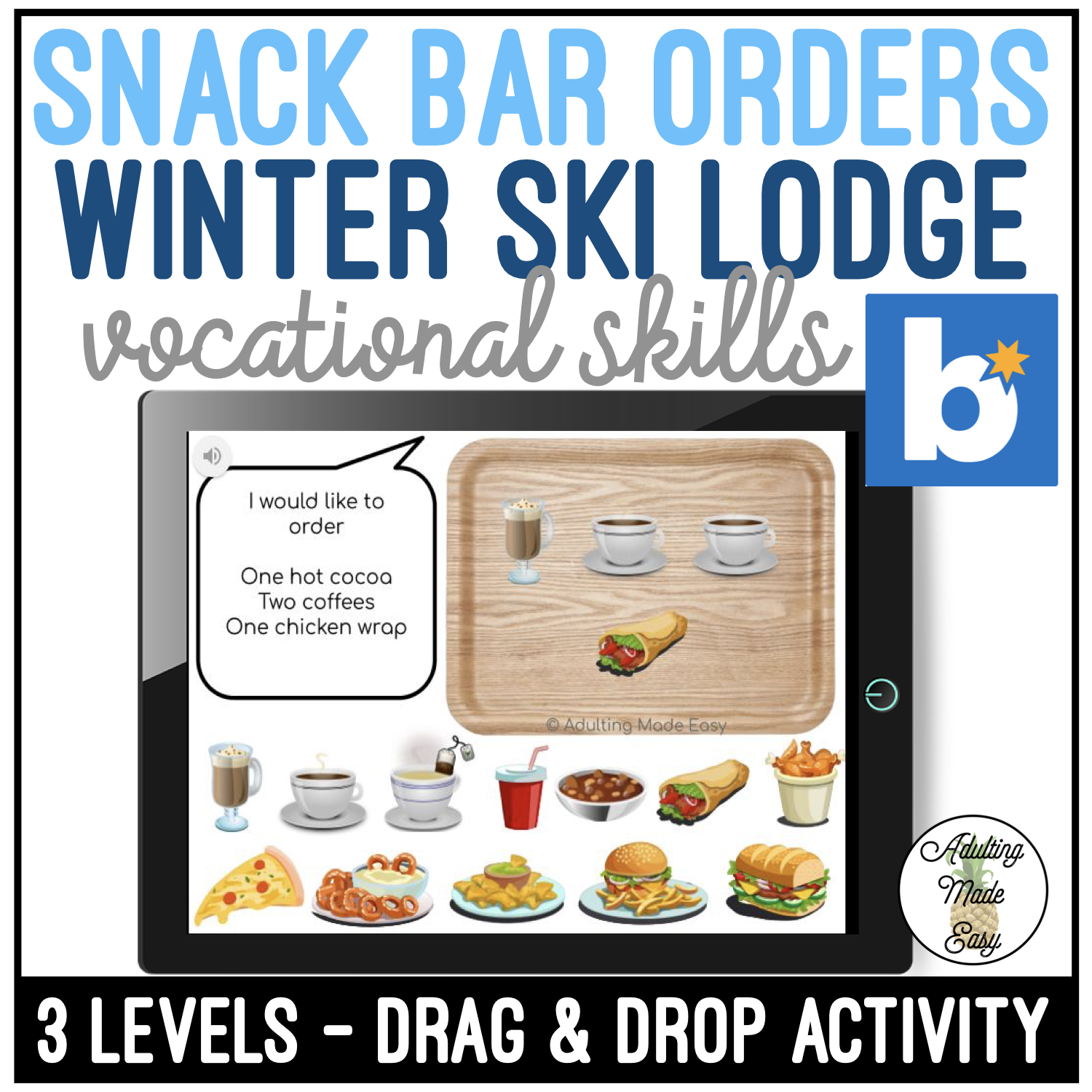 Winter themed activity to practice fulfilling food orders coming from a customer, before heading to off campus work! Great activity during distance learning, and for when you return to the classroom!
