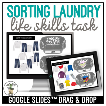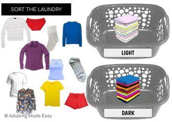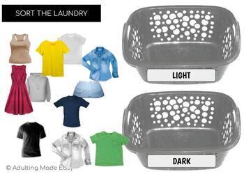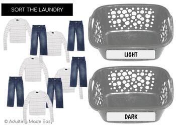 Differentiated Digital Independent Work task box activity where students can practice identifying light and dark clothing and putting them into the correct hamper or basket.