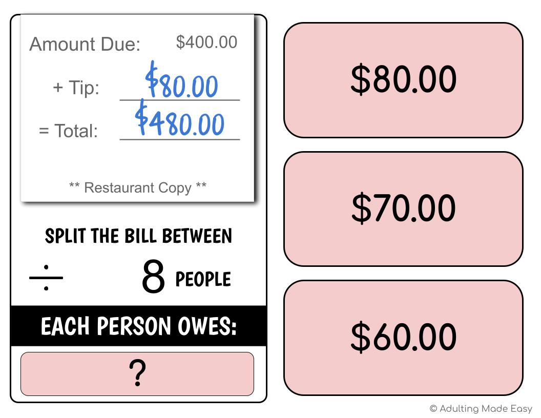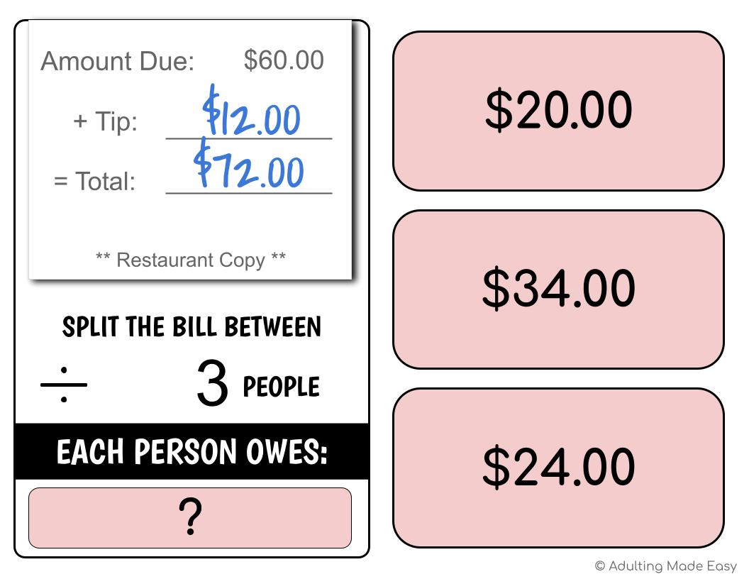 Functional life skills Math & Reading using simplified restaurant receipts to do division problems with whole numbers. This activity is formatted to make splitting a bill with friends or family, seeing how much each person owes, realistic and easier to understand for special education students. NO PREP, PAPERLESS