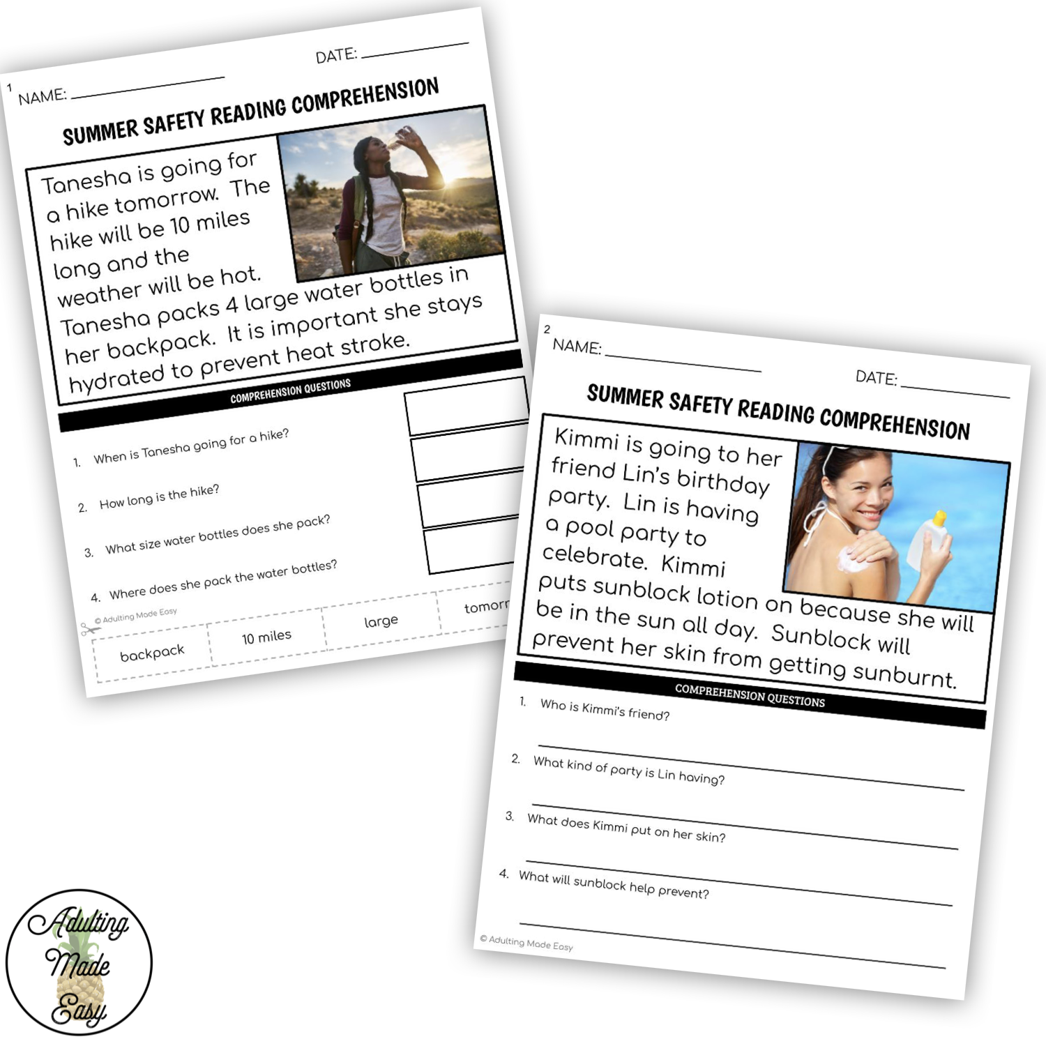 This set focuses on the topic of SAFETY in the summertime such as, wearing sunblock, swimming, hiking, fireworks and more!
