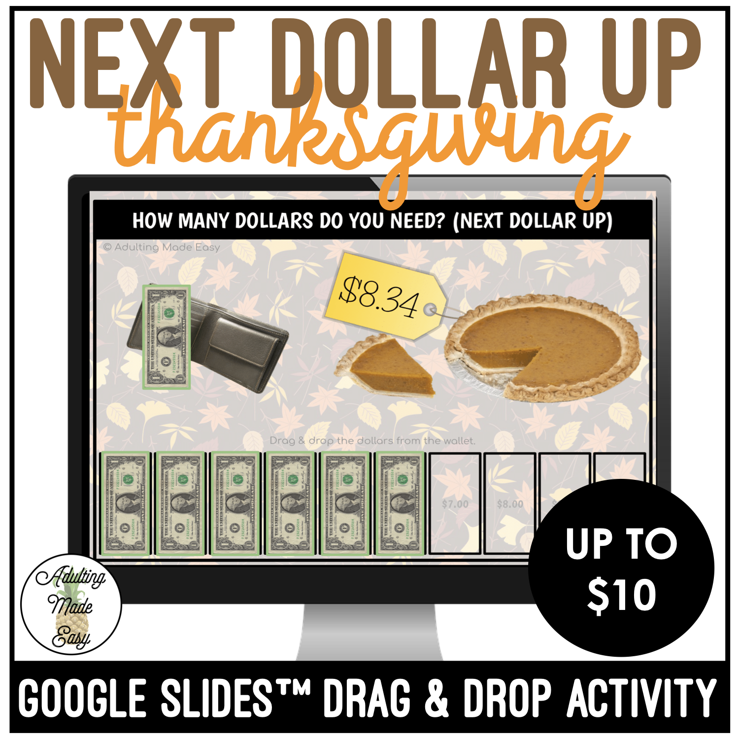 Thanksgiving Next Dollar Up to $10 Google Slides Activity