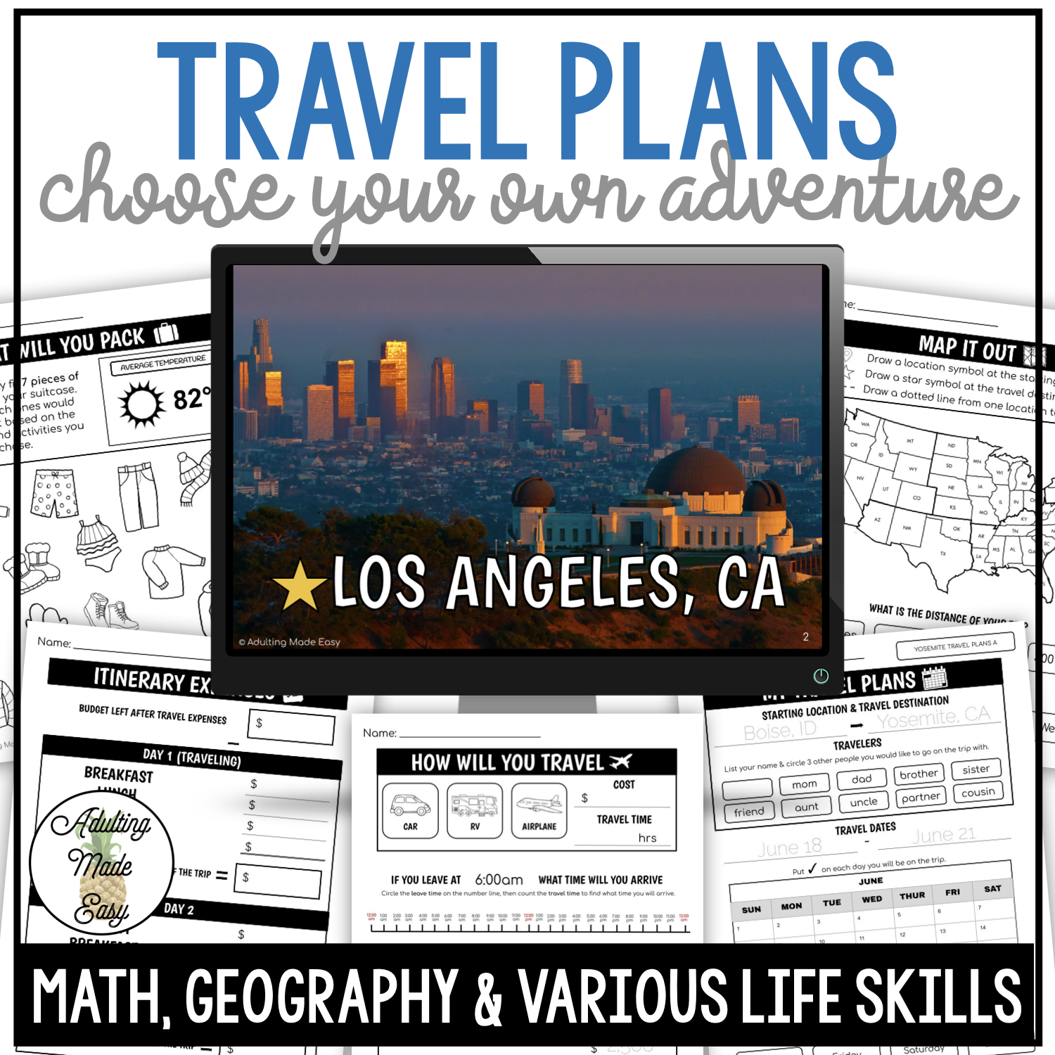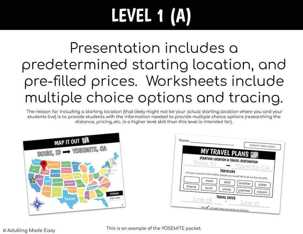 This differentiated activity is for all learners to practice the basic overall concept of planning a trip (in the United States) through basic math, geography, and various life skills you encounter when planning a trip.