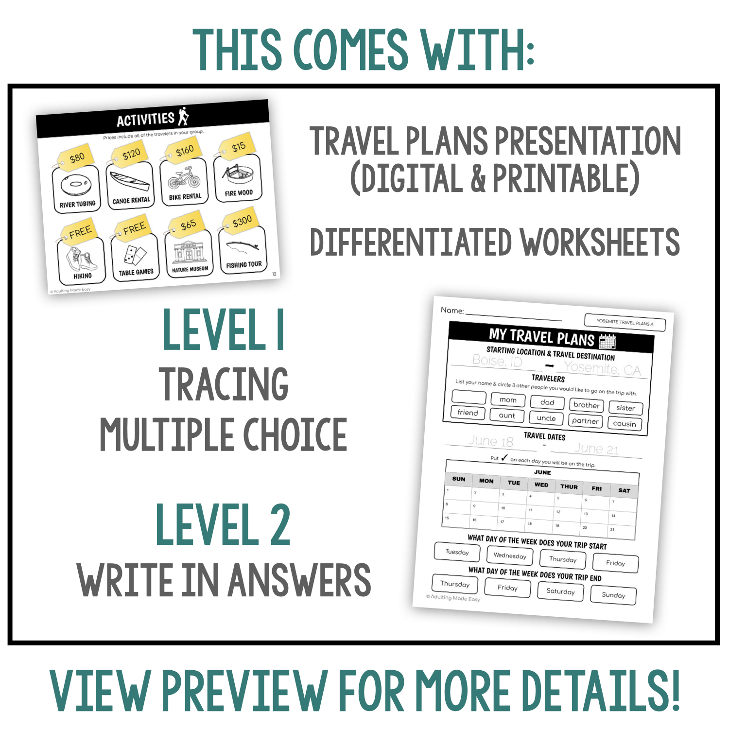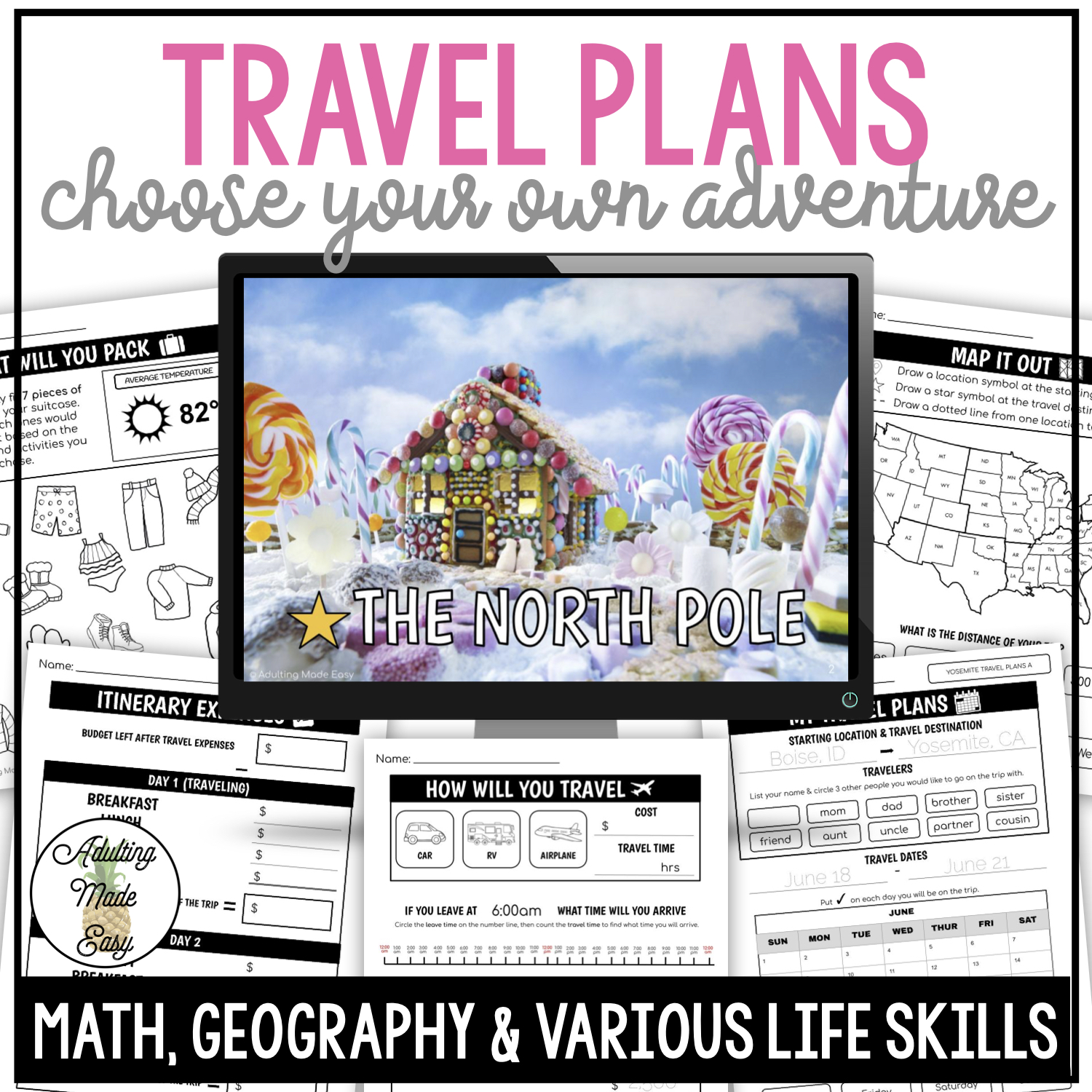 This differentiated activity is for all learners to practice the basic overall concept of planning a trip (in the United States) through basic math, geography, and various life skills you encounter when planning a trip.