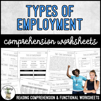 Career skills curriculum DIFFERENTIATED & VISUAL reading comprehension and functional worksheets on Types of Employment – Great for secondary special education students.