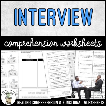 Career skills curriculum DIFFERENTIATED & VISUAL reading comprehension and functional worksheets on interviews- Great for secondary special education students.