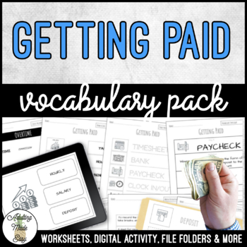 This unit focuses on vocational vocabulary and skills for understanding income and benefits an employee might receive from their employer. This unit also goes over basic concepts of taxes, deductions, commission, overtime, how to make a deposit, spending vs saving, as well as how to properly read and make calculations on a pay stub. These concepts are covered through visual lecture, cut & paste, tracing, reading comprehension, writing sentences, functional worksheets and more.
