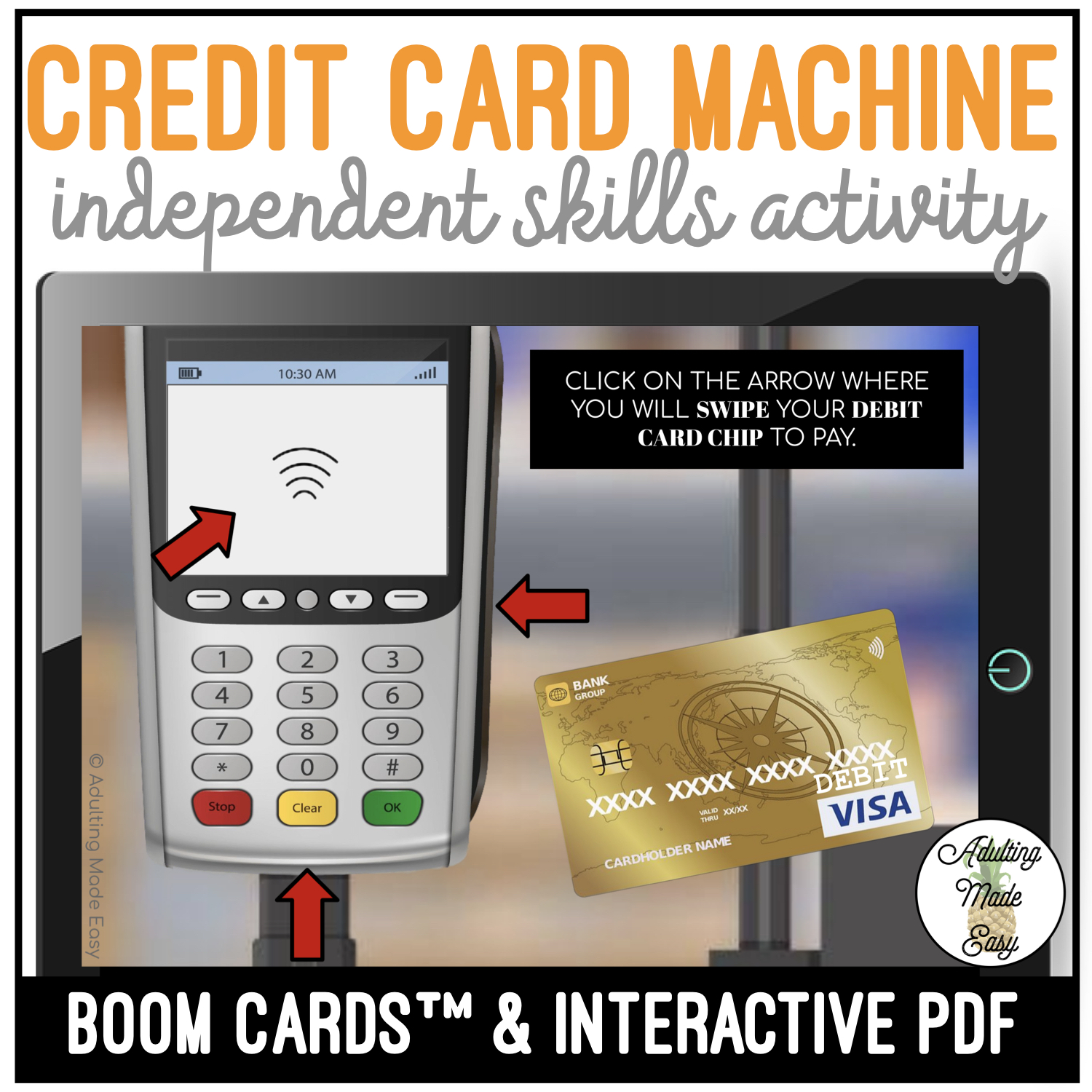 Visual and Functional life skills activity for special education and autism. This activity takes students through the basic step by step process of completing a transaction with a credit card machine with a credit card, debit card, or on the phone. NO PREP, PAPERLESS. Distance or remote learning