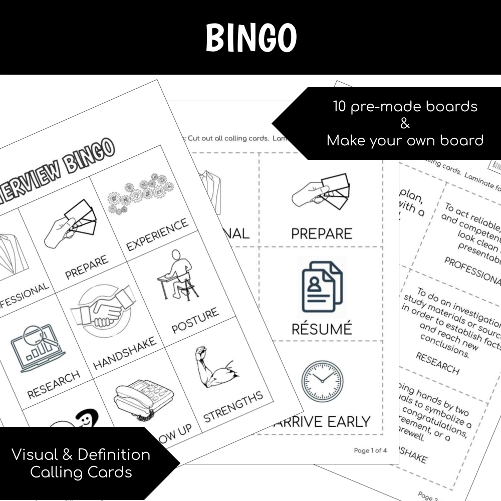 Career skills curriculum DIFFERENTIATED & VISUAL MONTHLY Bundle. Comes with an interactive lecture, printer friendly low ink worksheets, google quizzes, task cards, BINGO games, flash cards, extension activities, You tube videos links, and more! – great for special education students.