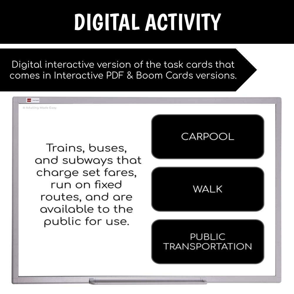 Career skills curriculum DIFFERENTIATED & VISUAL MONTHLY Bundle. Comes with an interactive lecture, printer friendly low ink worksheets, google quizzes, task cards, BINGO games, flash cards, extension activities, You tube videos links, and more! – great for special education students.