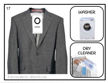 - Cheat sheet page explaining which clothes to wash or dry clean.