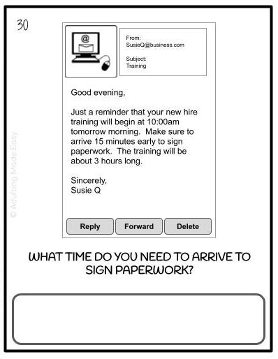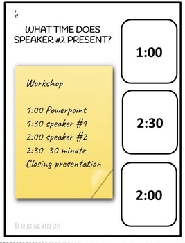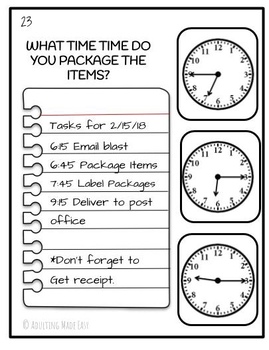 Career skills Task Cards for Special Education. Students can practice job skills by reading notices via a sticky notes, note pad, or email and attending to appointments or important events on time, practicing reading Digital & Analog Clocks.