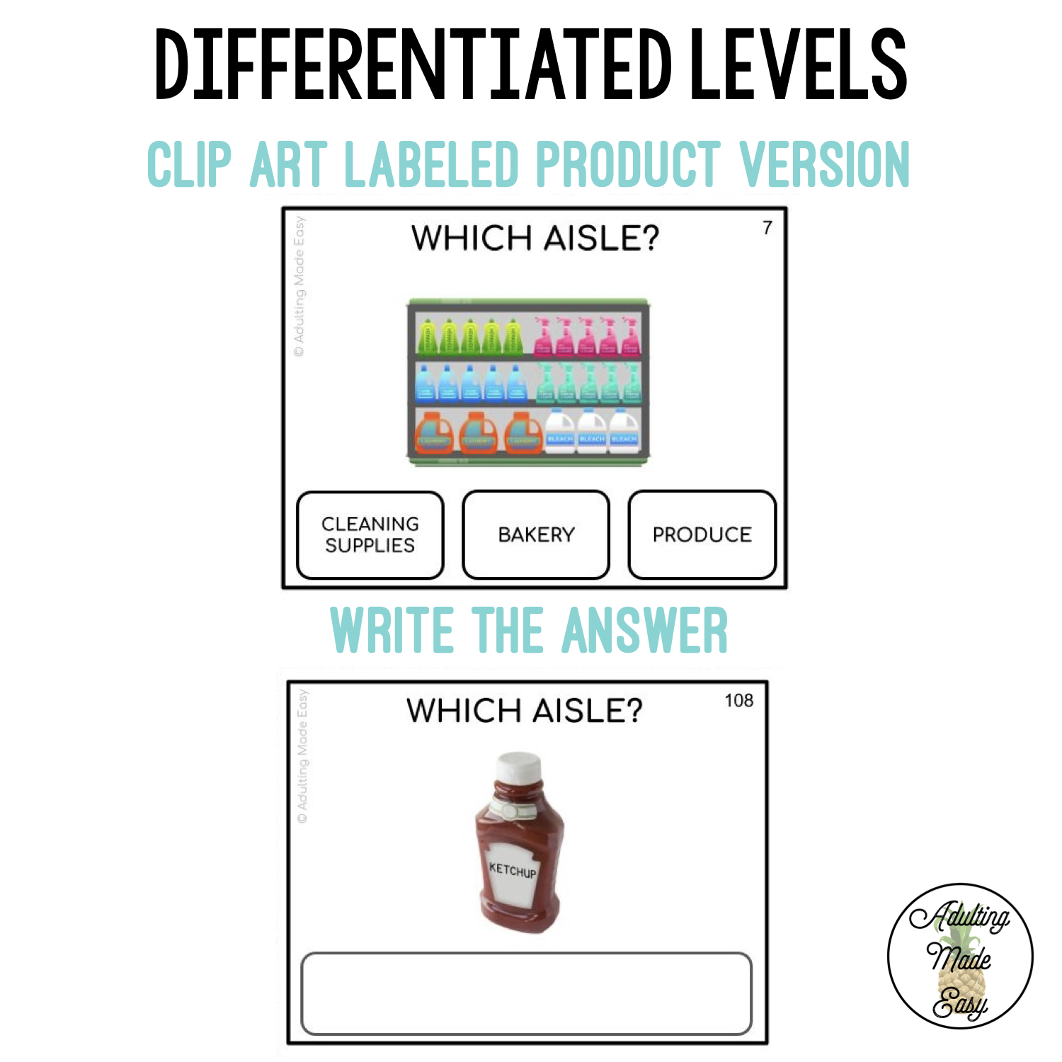 ★★ Keep in mind- all grocery stores label their aisles differently, there may be some variation in how items or aisles are labeled for this activity!