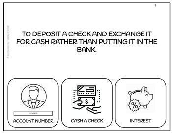 This visual functional reading activity helps special education students build essential banking and money-related vocabulary for real-world financial literacy. Students match images to simple definitions of common bank and finance terms, supporting independence and community readiness.
