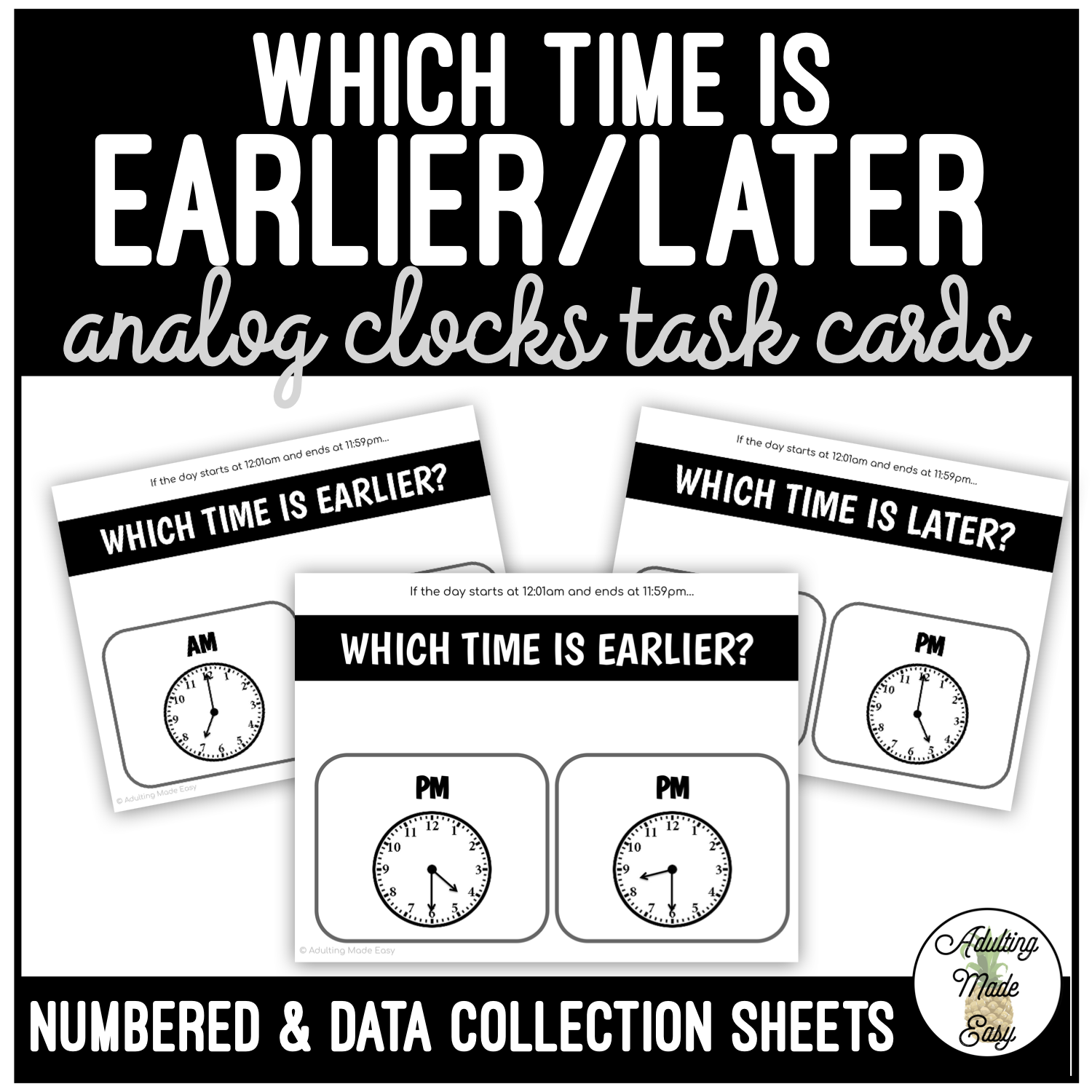 Which Time is Earlier/Later Analog Clocks Task Cards
