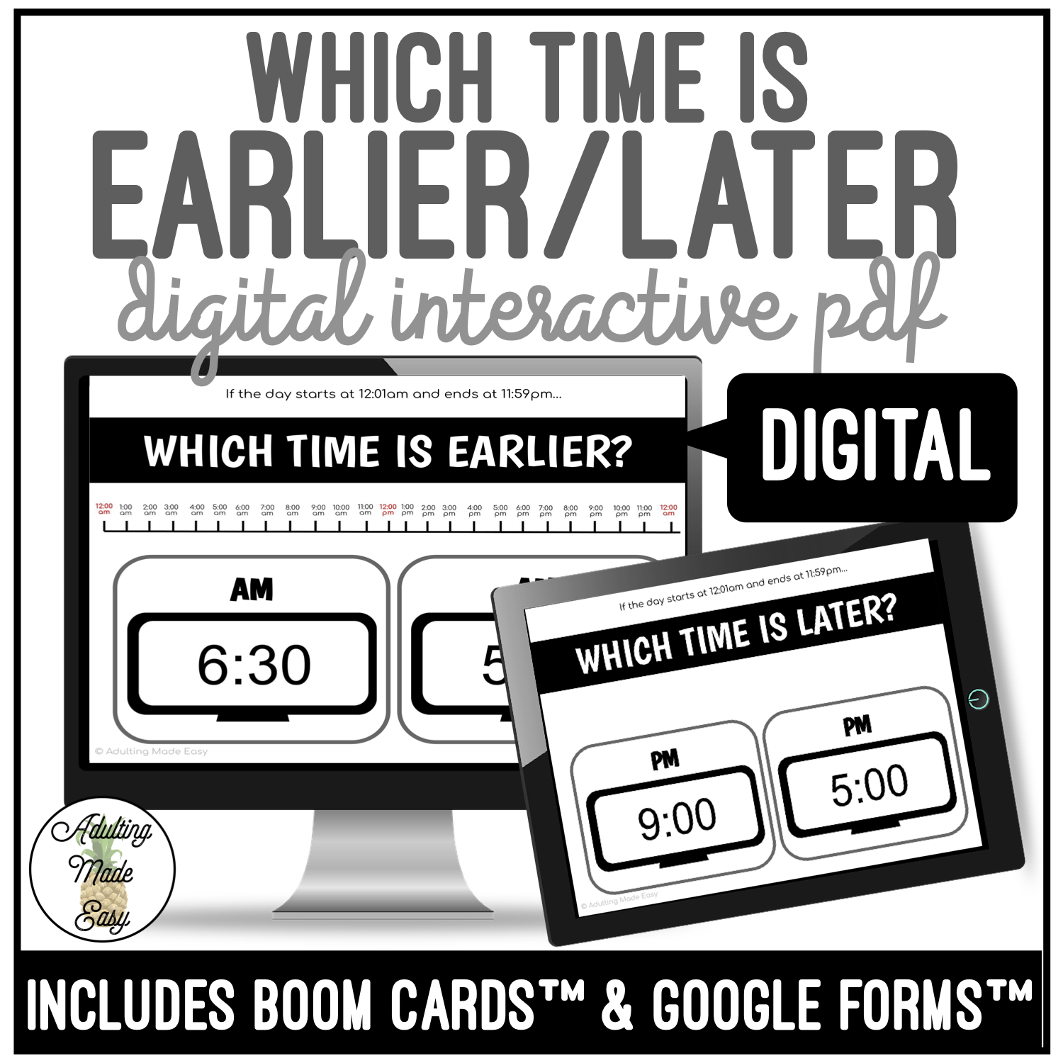Which Time is Earlier/Later Digital Clocks Digital Task Cards