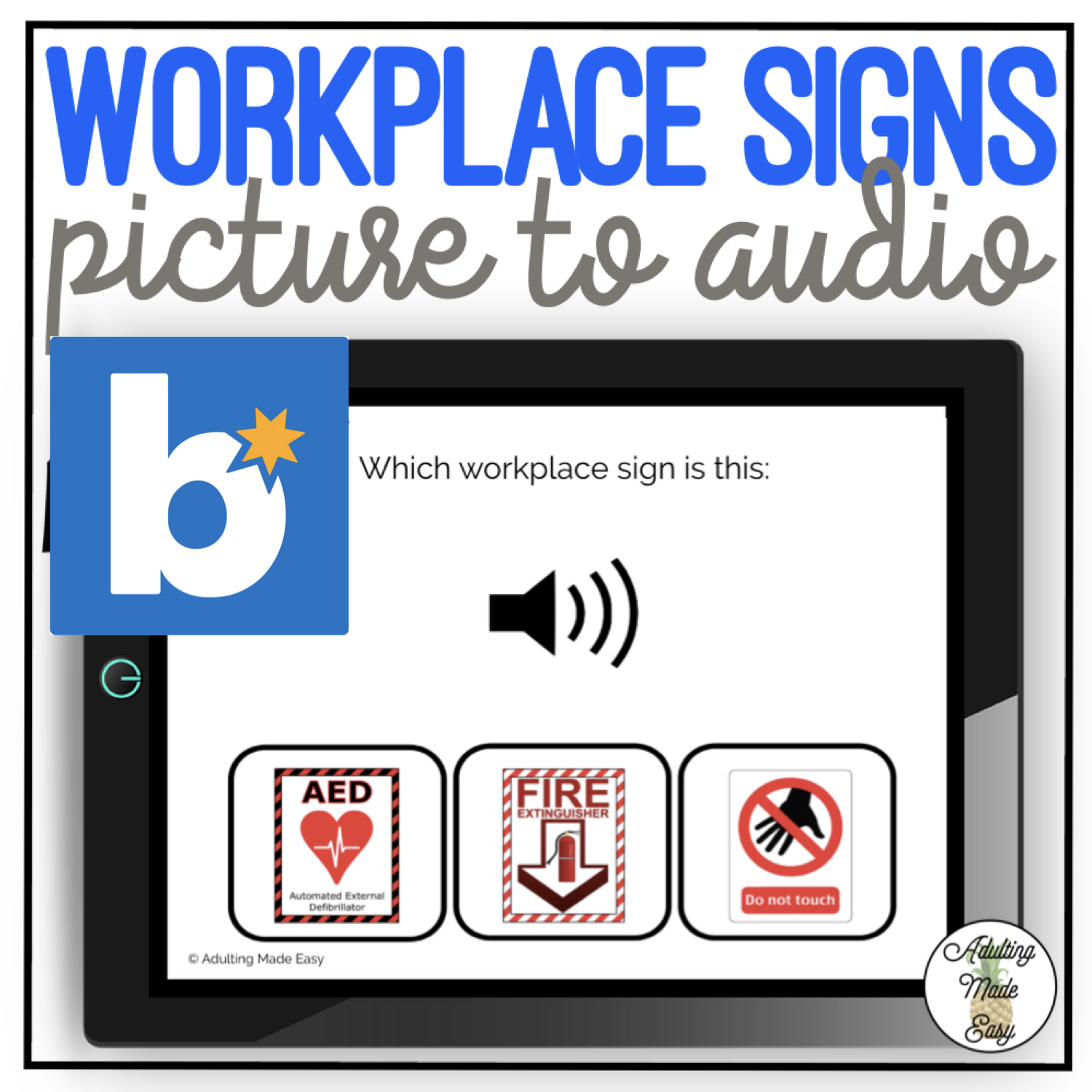 Support career readiness and vocational training with this visual functional reading activity focused on common workplace signs. Students will learn to identify informational, directional, and safety signs found in a variety of job settings and community workplaces.