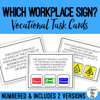 Differentiated and visual functional reading life skills task cards – Includes common safety and informational signs you might see in the community workplace. Great for autism, special education, and English language learner classroom. Age-appropriate visual resource for older students learning pre-vocational career job skills.