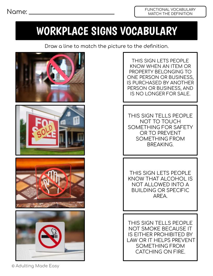 teens | adults | independent living skills | writing | community signs | safety | job skills | vocational | real photos | images | age appropriate