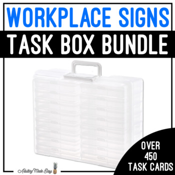 Money saving bundle of over 450 differentiated functional reading task cards with workplace signs vocabulary. Promotes independence for life skills special education or English language learners, and a great age appropriate & engaging activity for independent work stations or centers.