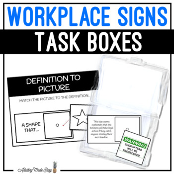 112 functional reading and definitions task cards with workplace signs vocabulary. Promotes independence for life skills special education or English language learners, and a great age appropriate & engaging activity for independent work stations or centers.
