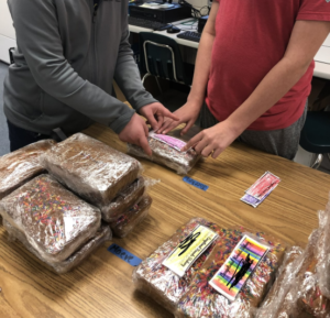 Beginning a business in the school is a labor of love. I have never seen my students more excited and more engaged than the week we spend on the bread. When it comes to the schedule, we spend a week making and preparing the bread for delivery. It may seem like a lot of time but the students are constantly moving and learning. Mondays are for dry ingredient bag preparation. Tuesdays and Wednesdays are for baking and packaging. Thursdays are for sorting. Fridays are for delivering. The deliveries have ended up being the students favorite part. They engage with all staff members, even the ones they may never see. They are immersed in the school, the neurotypical peers are jealous, and it gives my students confidence.
